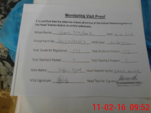 | Attendance Register | Head Teacher | MEA with School | Visit Proof |