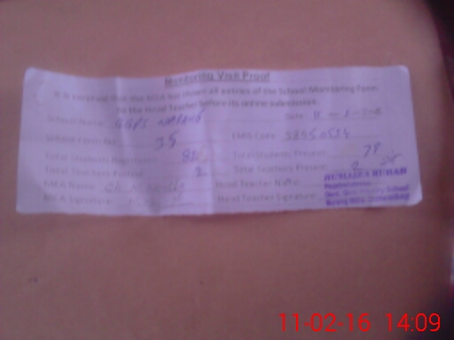 | Attendance Register | Head Teacher | MEA with School | Visit Proof |