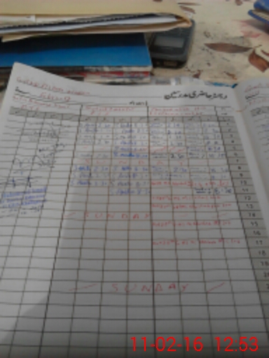 | CNIC | Full Name | Designation | R/C | Absence During Last Calender Month |