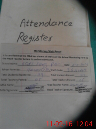 | Attendance Register | Head Teacher | MEA with School | Visit Proof |