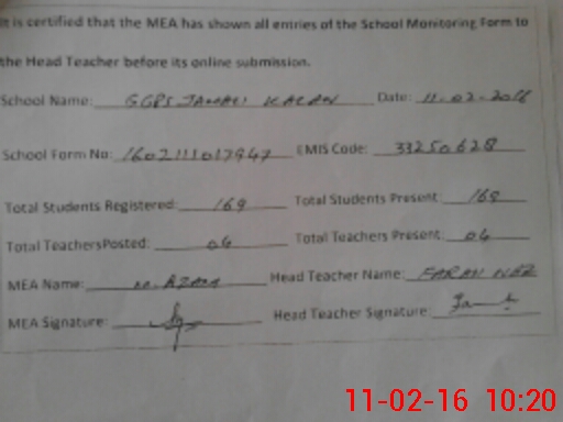 | EMIS Code: 33250628 | Name of School: GGPS JAMALI KALAN | |||