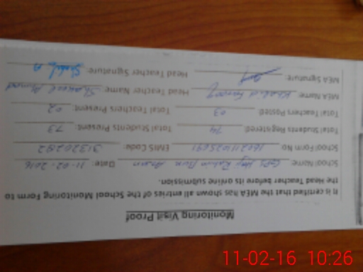 | Certified that this School was Inspected by the Undersigned MEA/DMO Today and the Information Stated Above is as Per Record. | |||||