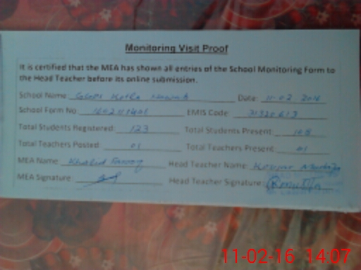 | Certified that this School was Inspected by the Undersigned MEA/DMO Today and the Information Stated Above is as Per Record. | |||||