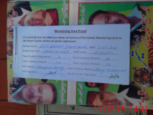 | EMIS Code: 31320277 | Name of School: GPS MOADIB NIZAM WALA | |||