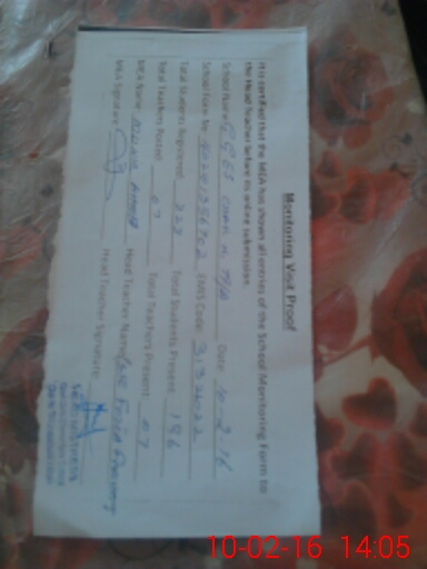 | Certified that this School was Inspected by the Undersigned MEA/DMO Today and the Information Stated Above is as Per Record. | |||||