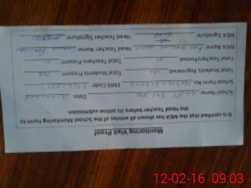 | Attendance Register | Head Teacher | MEA with School | Visit Proof |