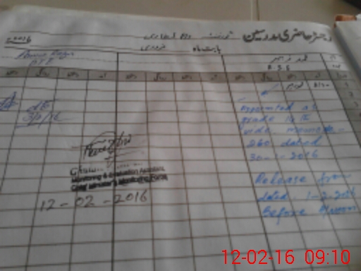 | Name: MA**** QA**** Designation: (School Headmaster's/Headmistress's) PST Phone/Cell Number: 03**** |