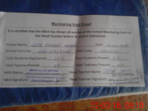 | EMIS Code: 39210372 | Name of School: GGPS MOHALLAH FAREED NAGAR | |||
