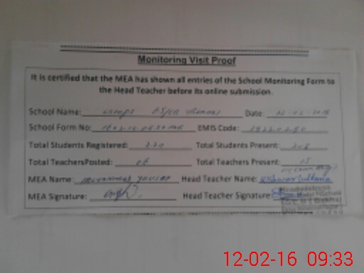 | Certified that this School was Inspected by the Undersigned MEA/DMO Today and the Information Stated Above is as Per Record. | |||||