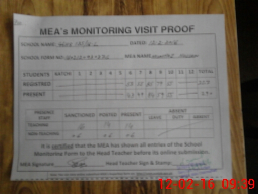 | Attendance Register | Head Teacher | MEA with School | Visit Proof |