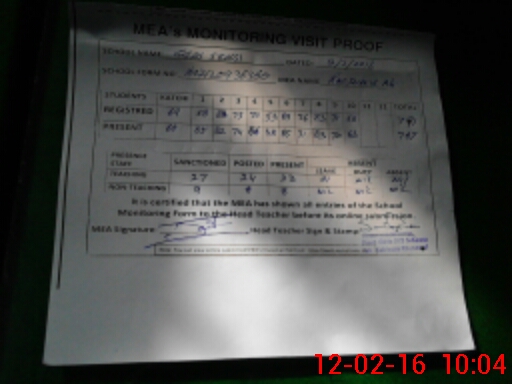 | Attendance Register | Head Teacher | MEA with School | Visit Proof |