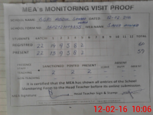 | EMIS Code: 36410433 | Name of School: GGPS ABDUL SAMAD WALA, SARAI SIDHU | |||