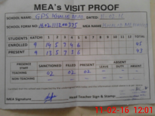 | EMIS Code: 36430256 | Name of School: GPS KHALIQ ABAD, P/O 11-A/8R, TULAMBA | |||