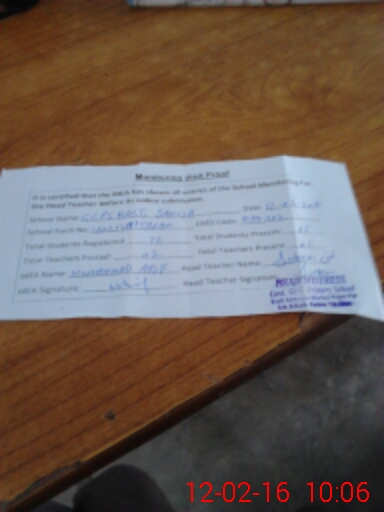 | Attendance Register | Head Teacher | MEA with School | Visit Proof |