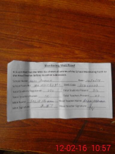 | Certified that this School was Inspected by the Undersigned MEA/DMO Today and the Information Stated Above is as Per Record. | |||||