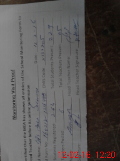 | Name: GH**** MU**** Designation: (School Headmaster's/Headmistress's) EST Phone/Cell Number: 03**** |