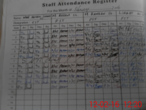 | CNIC | Full Name | Designation | R/C | Absence During Last Calender Month |