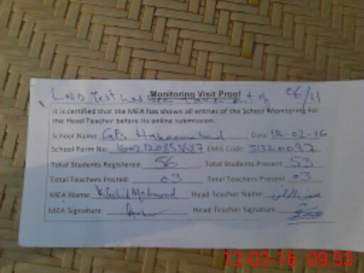 | Certified that this School was Inspected by the Undersigned MEA/DMO Today and the Information Stated Above is as Per Record. | |||||