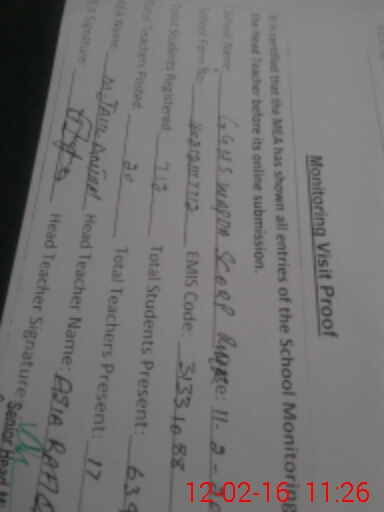 | Certified that this School was Inspected by the Undersigned MEA/DMO Today and the Information Stated Above is as Per Record. | |||||