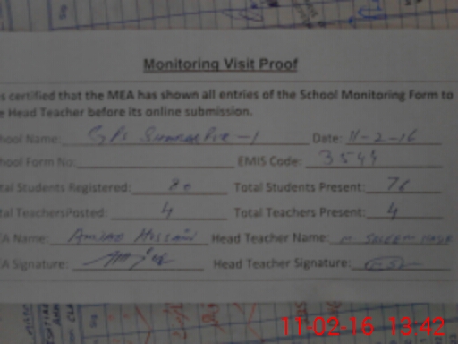 | Attendance Register | Head Teacher | MEA with School | Visit Proof |