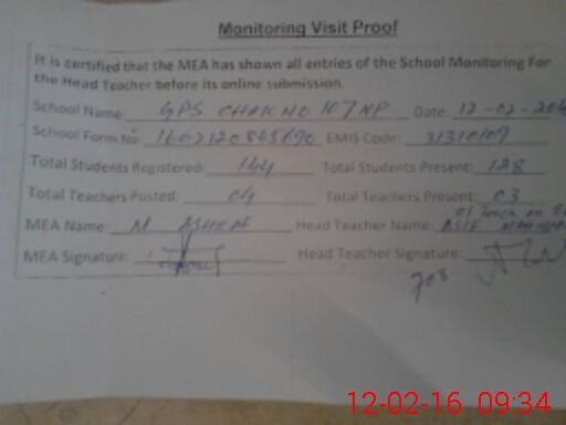 | EMIS Code: 31310109 | Name of School: GPS CHAK NO 107 NP (After Noon) | |||