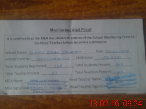 | EMIS Code: 39210431 | Name of School: GMPS CHAK SALAMAT | |||