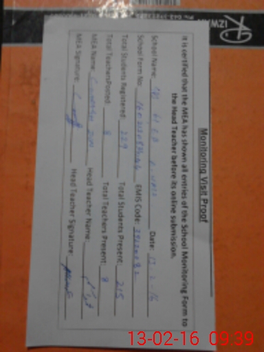 | Certified that this School was Inspected by the Undersigned MEA/DMO Today and the Information Stated Above is as Per Record. | |||||