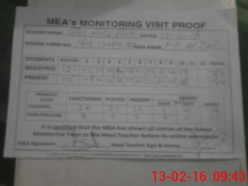 | Certified that this School was Inspected by the Undersigned MEA/DMO Today and the Information Stated Above is as Per Record. | |||||