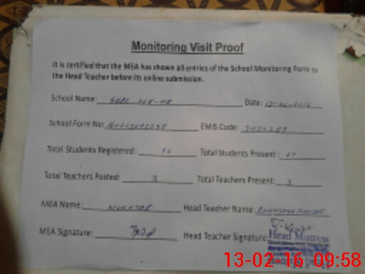 | Attendance Register | Head Teacher | MEA with School | Visit Proof |