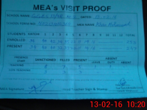 | Certified that this School was Inspected by the Undersigned MEA/DMO Today and the Information Stated Above is as Per Record. | |||||