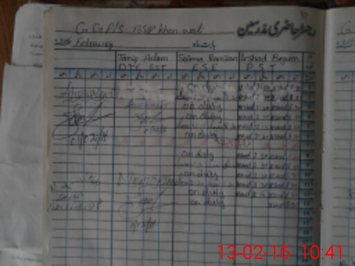 | CNIC | Full Name | Designation | R/C | Absence During Last Calender Month |