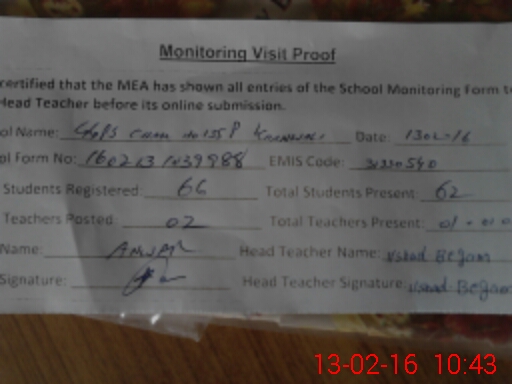 | Certified that this School was Inspected by the Undersigned MEA/DMO Today and the Information Stated Above is as Per Record. | |||||