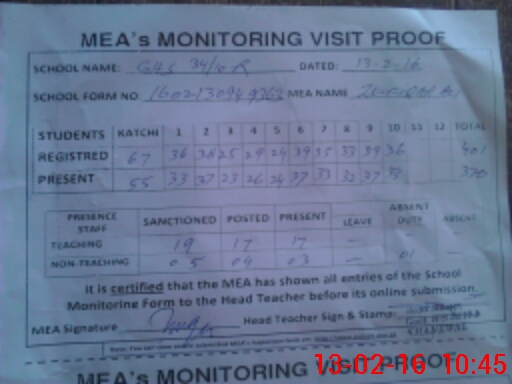 | Certified that this School was Inspected by the Undersigned MEA/DMO Today and the Information Stated Above is as Per Record. | |||||