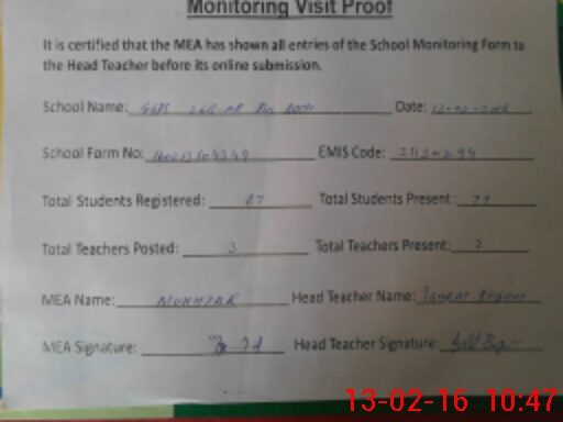 | Certified that this School was Inspected by the Undersigned MEA/DMO Today and the Information Stated Above is as Per Record. | |||||