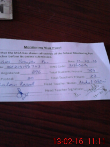 | EMIS Code: 31340014 | Name of School: GHS SANJAR PUR | |||