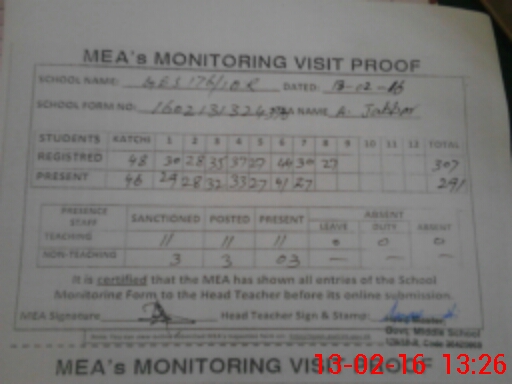 | Attendance Register | Head Teacher | MEA with School | Visit Proof |