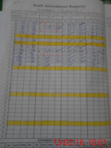 | CNIC | Full Name | Designation | R/C | Absence During Last Calender Month |