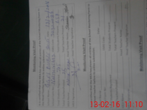| Monitoring Date: 13-02-2016 | Start Time: 13-02-2016 09:44 AM | End Time: 13-02-2016 11:11 AM | Name of MEA: Na**** Kh**** | |
