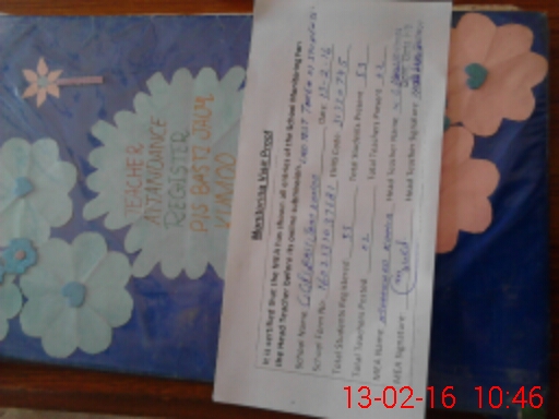 | Attendance Register | Head Teacher | MEA with School | Visit Proof |