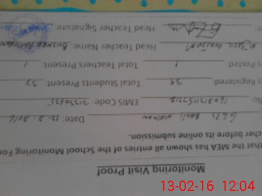 | Certified that this School was Inspected by the Undersigned MEA/DMO Today and the Information Stated Above is as Per Record. | |||||