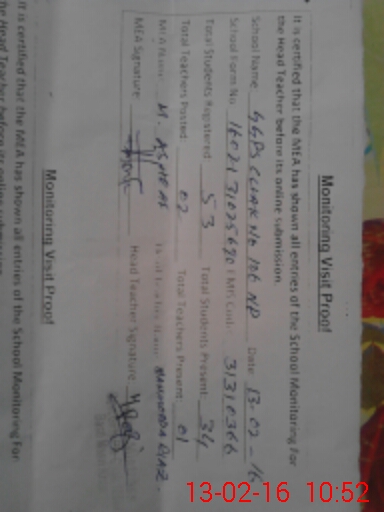 | Monitoring Date: 13-02-2016 | Start Time: 13-02-2016 10:25 AM | End Time: 13-02-2016 10:52 AM | Name of MEA: Mu**** Yo**** | |