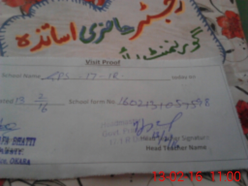 | EMIS Code: 39330415 | Name of School: GPS CHAK NO. 17/1-R | |||