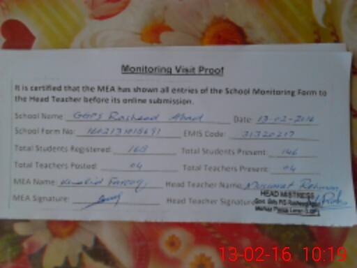 | EMIS Code: 31320217 | Name of School: GGPS RASHEED ABAD | |||