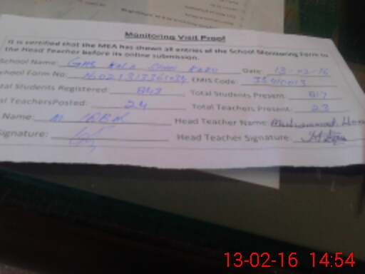| EMIS Code: 35410013 | Name of School: GHS KALA SHAH KAKU | |||