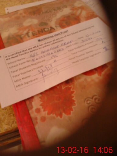 | Attendance Register | Head Teacher | MEA with School | Visit Proof |