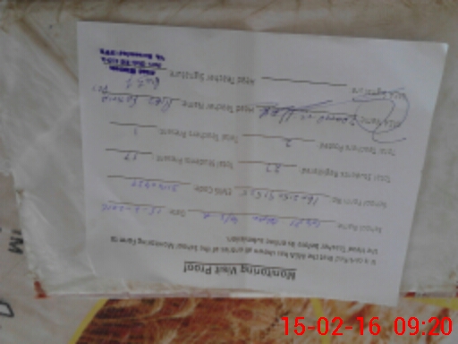 | Monitoring Date: 15-02-2016 | Start Time: 15-02-2016 08:53 AM | End Time: 15-02-2016 09:24 AM | Name of MEA: Za**** BN**** | |