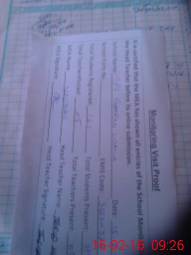 | Attendance Register | Head Teacher | MEA with School | Visit Proof |
