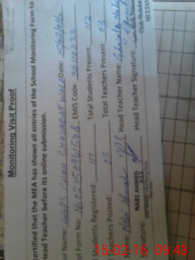 | EMIS Code: 36110233 | Name of School: GGPS CHAH SHAHADAT WALA MULTAN | |||