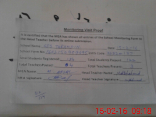 | EMIS Code: 32320137 | Name of School: GPS TARANDIN | |||