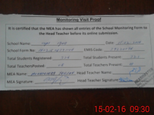 | Certified that this School was Inspected by the Undersigned MEA/DMO Today and the Information Stated Above is as Per Record. | |||||